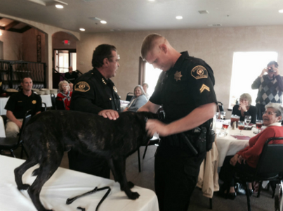 The latest member of the Calaveras County Sheriff's Office was sworn on November 12, 2014, at a ceremony hosted by the Friends of the Calaveras Sheriff's Office held at La Contenta Golf Club Buster, a 3-year-old Dutch shepherd K-9 deputy narcotics detection dog, was publicly sworn in this week, but he hit the streets in the spring. Since beginning work on May 27, Buster has contributed to 20 arrests. Through vehicle stops and probation searches, the K-9 has sniffed out two heroin hits, two methamphetamine hits, and multiple marijuana hits. Buster is 100 percent funded by the Friends of the Calaveras Sheriff Office